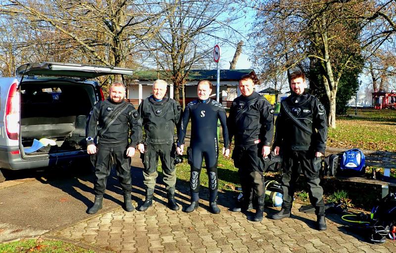 Dan nakon održane Redovne skupštine zaronili smo u hladne vode zagrebačkog jezera Jarun u okviru vježbe civilne zaštite i provjere opreme u ovim hladnim uvjetima. No, sunce nam se smilovalo i pokazalo svoje lice, tako da smo se barem na površini osjećali ugodno. Suha odijela (i poneko polusuho) izdržala su test i ronjenje je proteklo sigurno i ugodno, a za svaku sigurnost slijedio nas je i podvodni dron kojim je upravljao naš Mačak. Zaron nas je bez obzira na temperaturu vode od 6 stupnjeva Celzija oduševio. Vidljivost je savršena (oko 10m), a bogatstvo flore i faune je impresivno. Jedan predivan som od preko metra i jata tostolobika i amura su nas očarali. Na Jarun se sigurno ponovno vraćamo! |